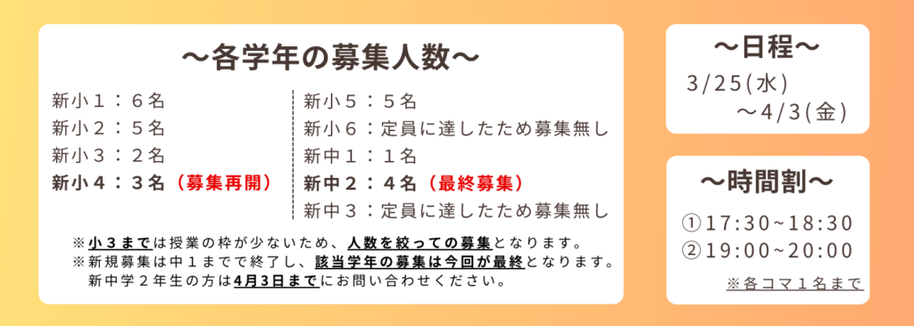 募集学年・時間帯の詳細は以下をご確認ください↓