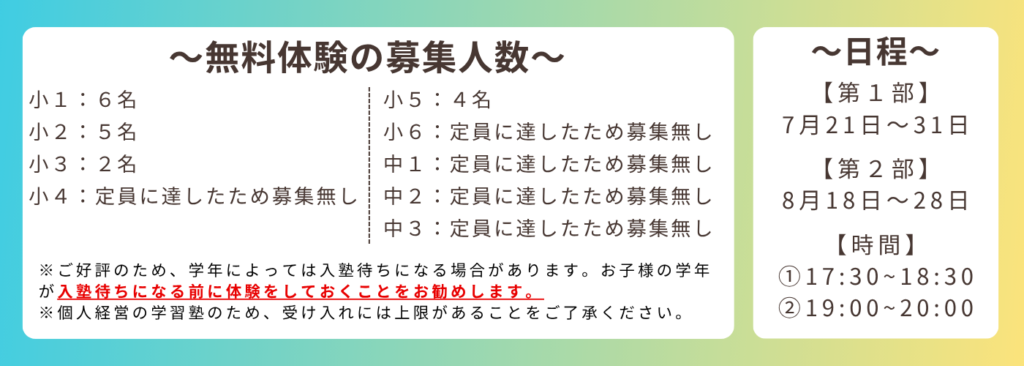 そうすると、タイミング的にも「夏休み無料体験会」はいい機会になりそうですね!